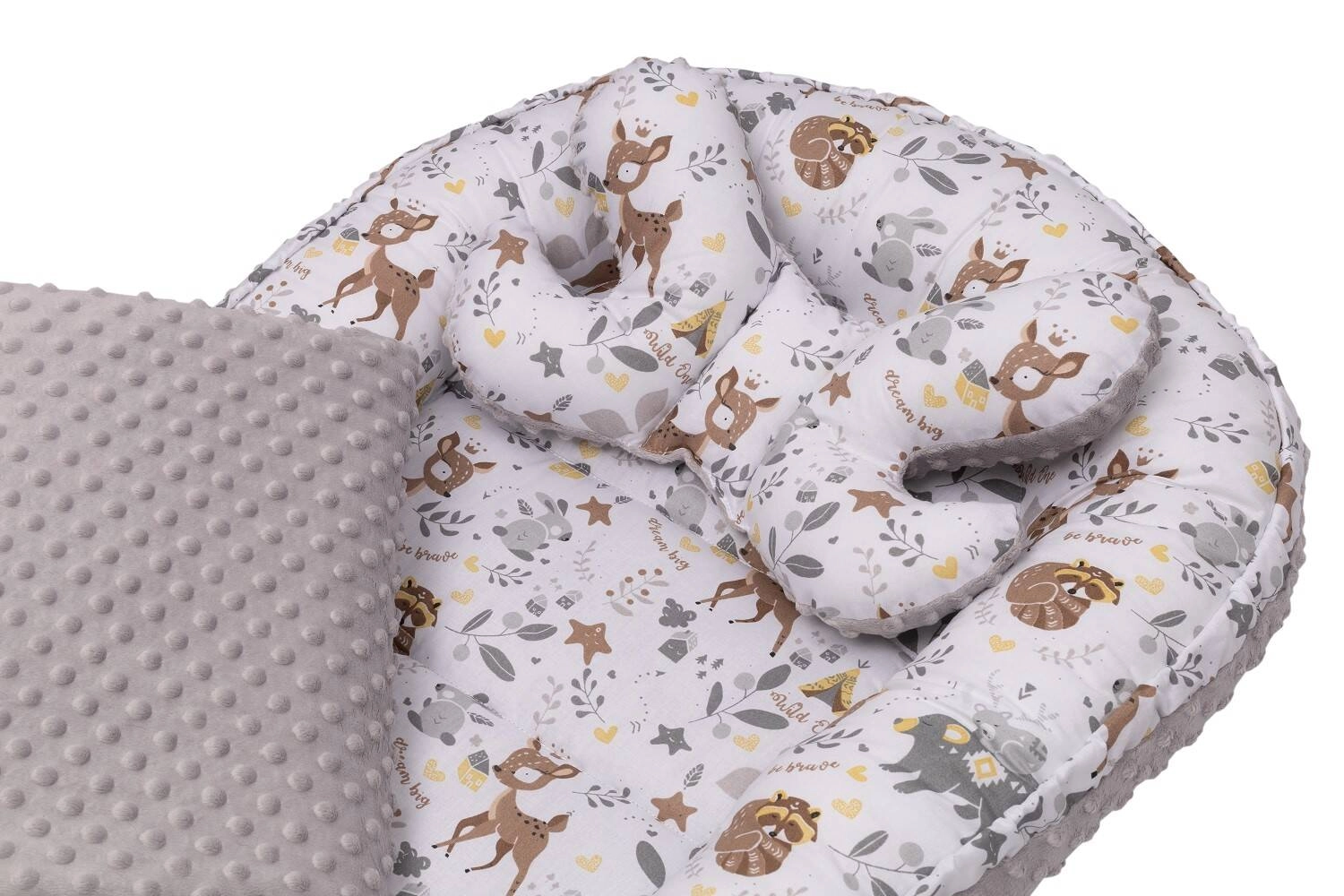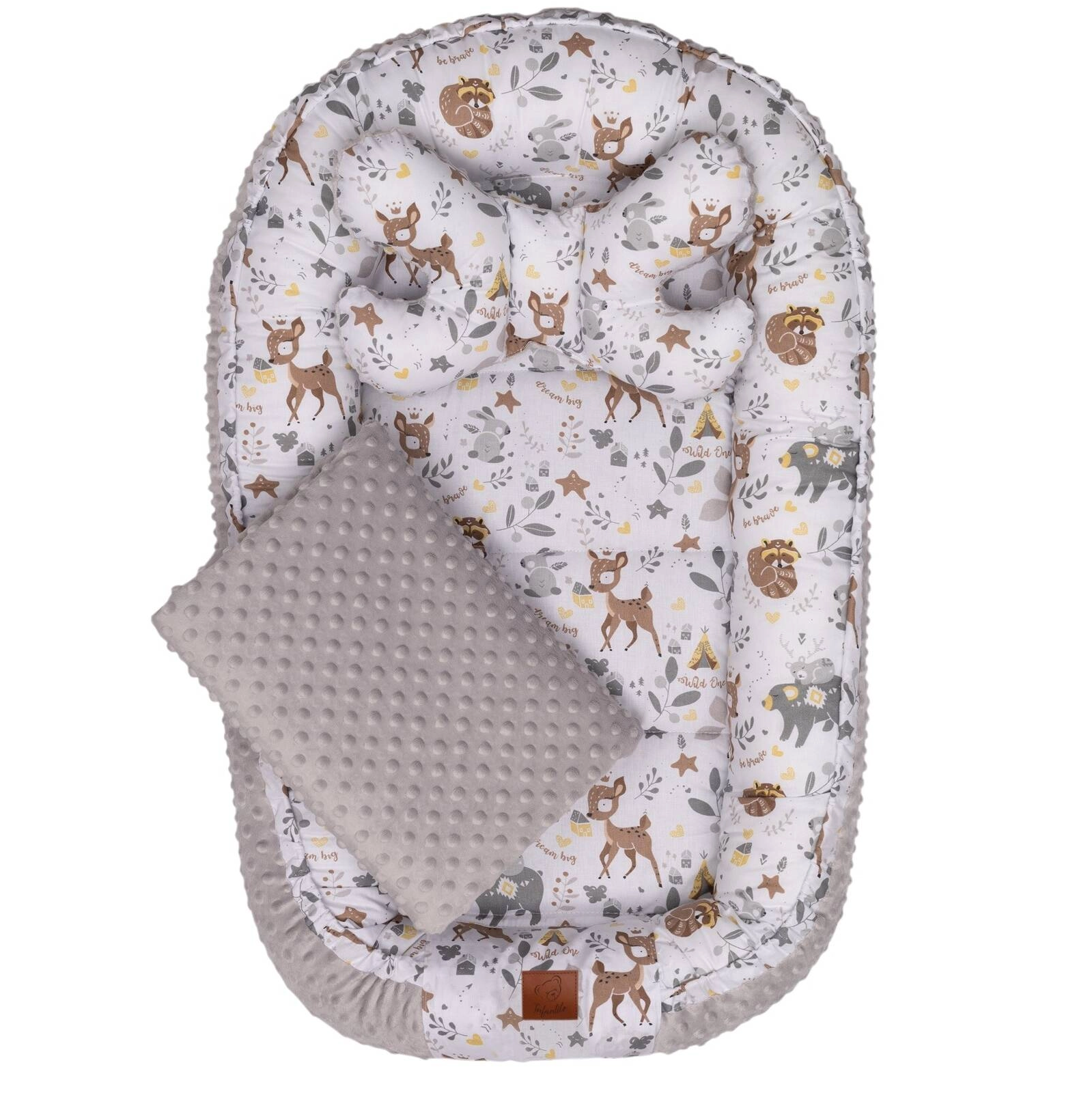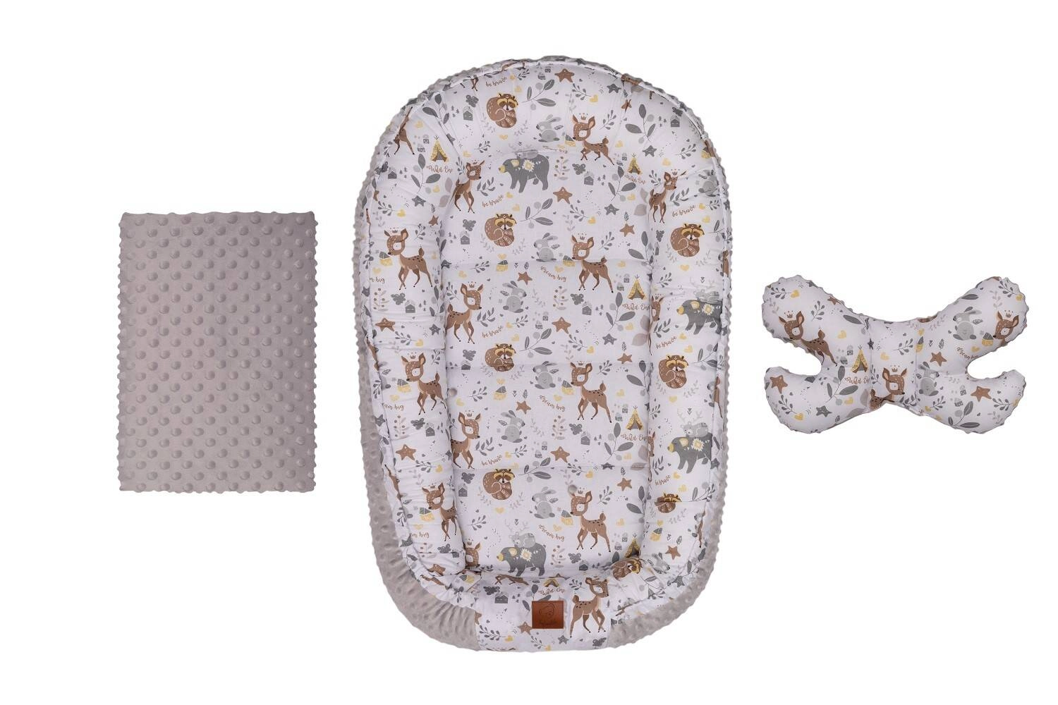 Kokon niemowlęcy Minky/bawełna w zestawie posiada poduszkę motylek i kocyk.