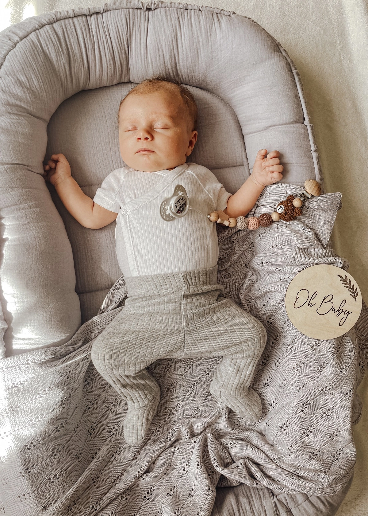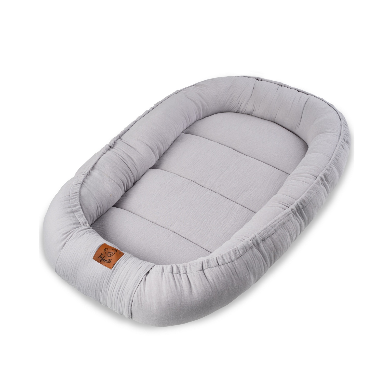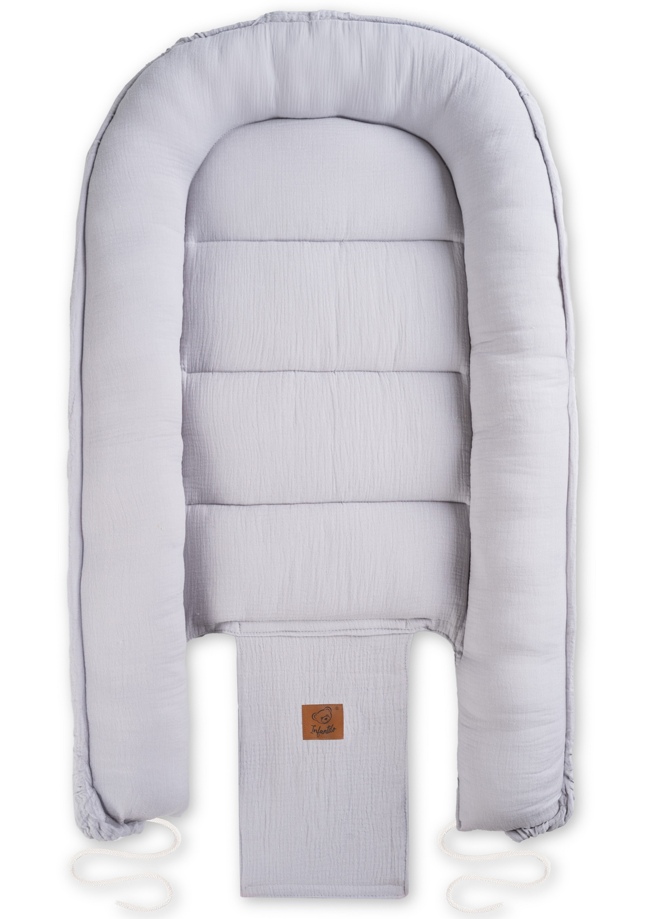 Kokon niemowlęcy został wykonany z najwyższej jakości 100% bawełny muślinowej double gaze, co gwarantuje jego wyjątkową miękkość, przewiewność oraz bezpieczeństwo dla delikatnej skóry dziecka. Elegancki design sprawia, że kokon stanowi nie tylko praktyczne, ale i stylowe uzupełnienie pokoju dziecięcego. Kokon został tak stworzony aby zapewnić dziecku bezpieczeństwo i komfort użytkowania. Dodatkowa klapa zabezpieczająca sznurki zapewnia, bezpieczne wykończenie całej konstrukcji.