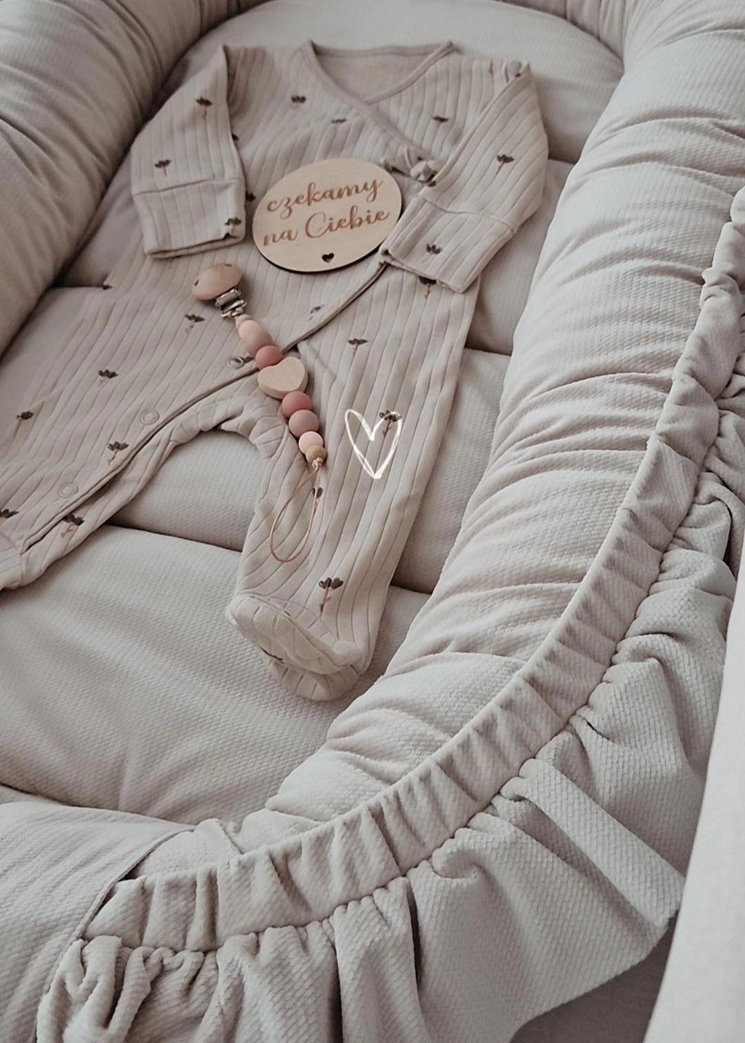 Kokon zapewnia dziecku przytulną, ograniczoną przestrzeń, przypominającą warunki z brzuszka mamy – idealne dla noworodków i niemowląt, które lubią być tulone. Dzięki dekoracyjnej falbance stanowi również uroczy element wystroju dziecięcego pokoju.