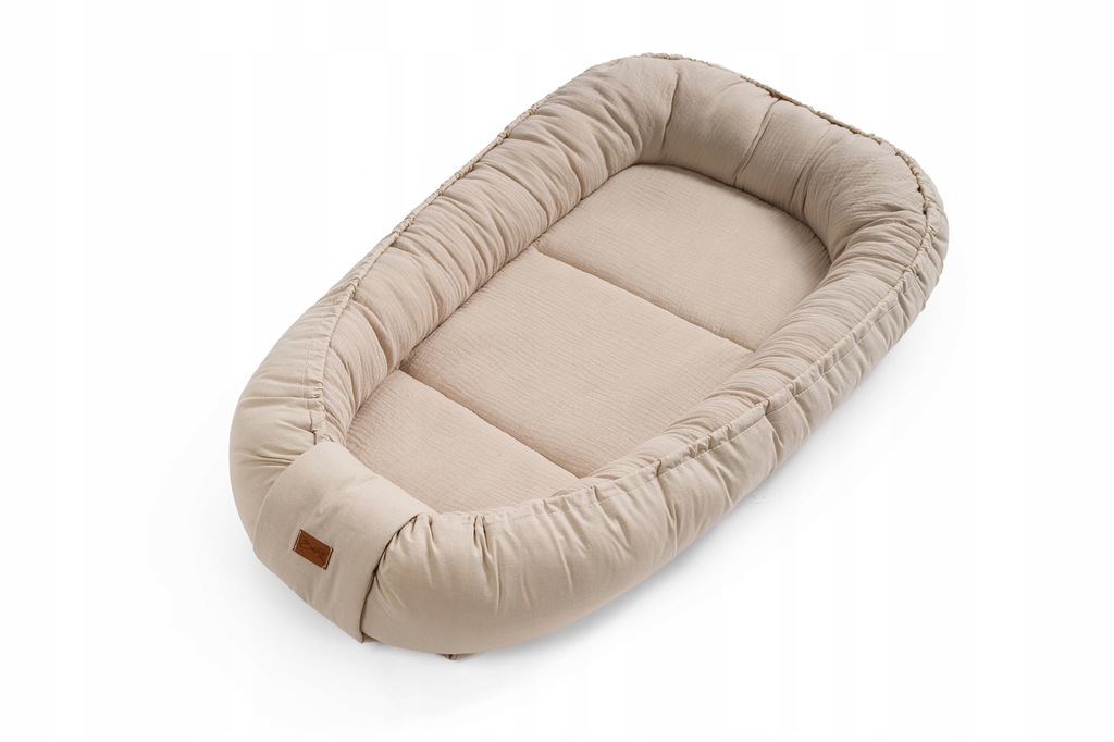 Kokon niemowlęcy z poduszką i kocykiem muślin beżowy / naturalny BR