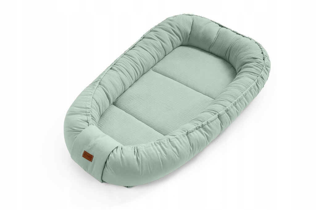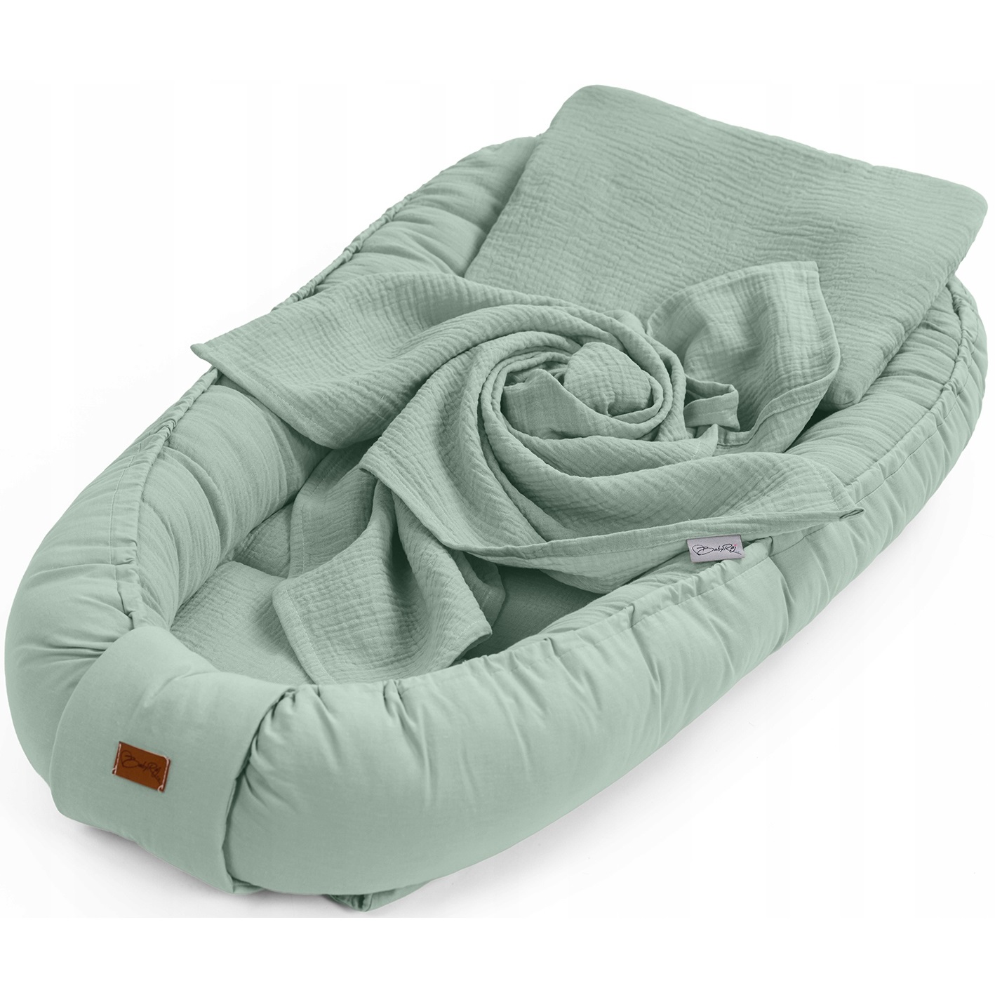 Kokon niemowlęcy z poduszką i kocykiem muślin szałwiowy / zielony BR