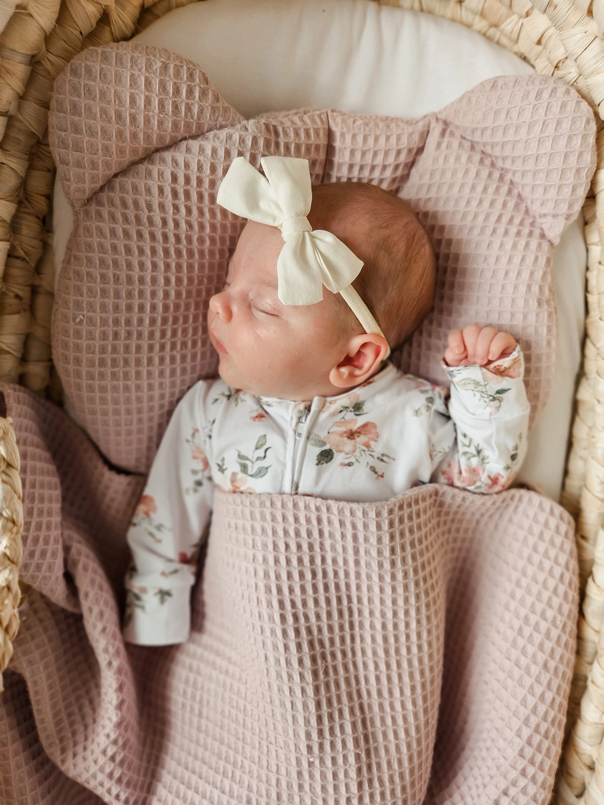 Ciekawy splot bawełny powoduje, że komplet “WAFFLE” pełni również funkcję ozdobną pokoiku oraz wózka dziecięcego.