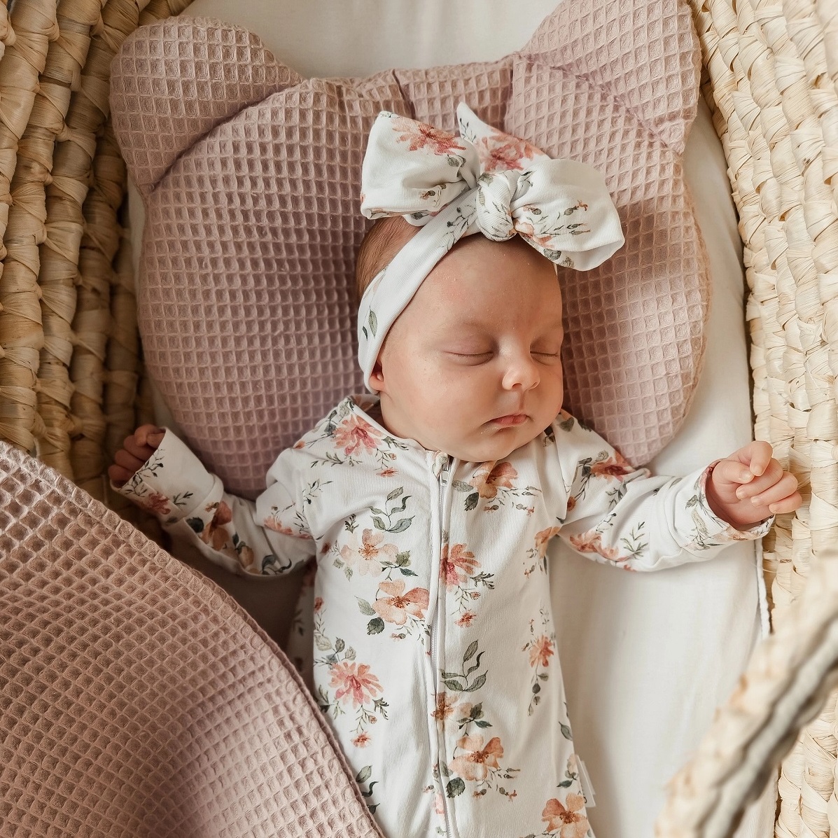 Poduszeczka w zestawie jest płaska – ok.2cm wysokości, stworzona specjalnie dla niemowląt.