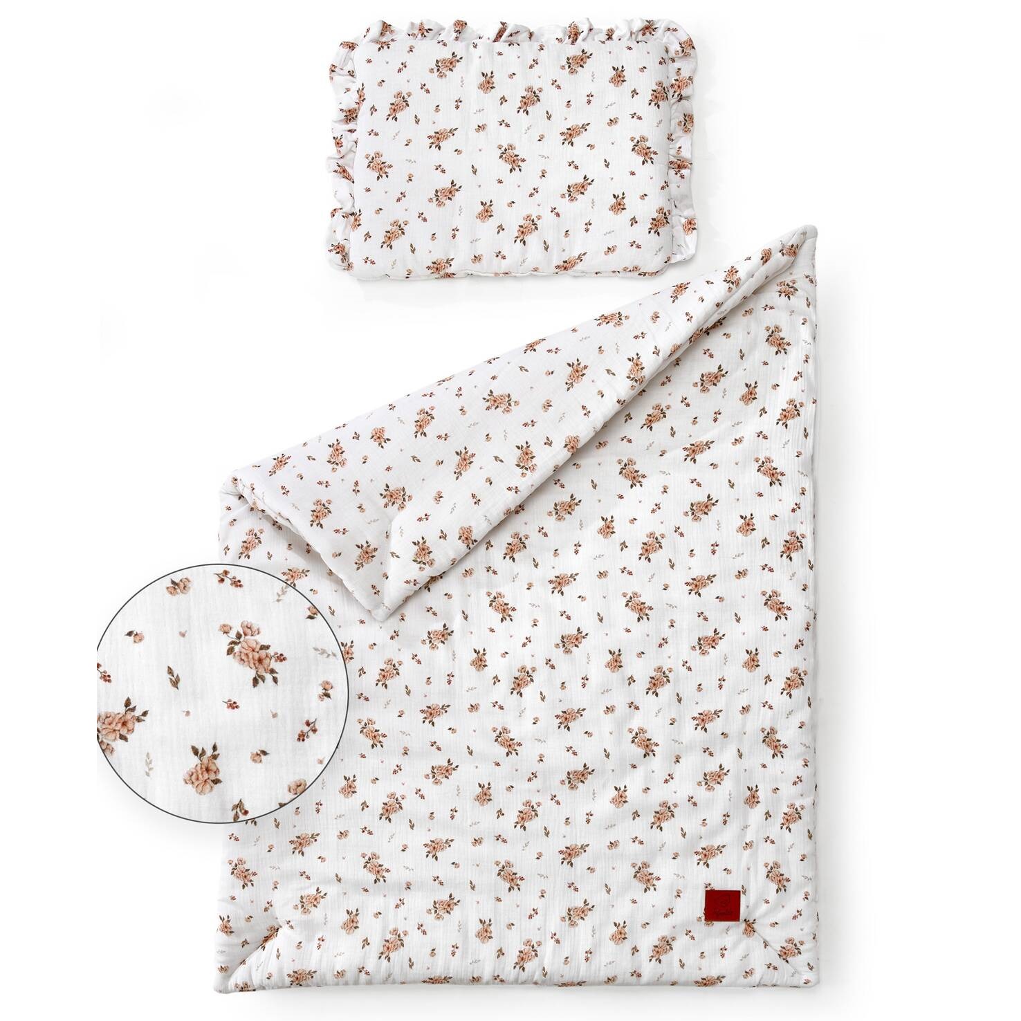 Komplet pościeli muślinowej z falbanką i wypełnieniem Little Flowers 120×90 cm IF