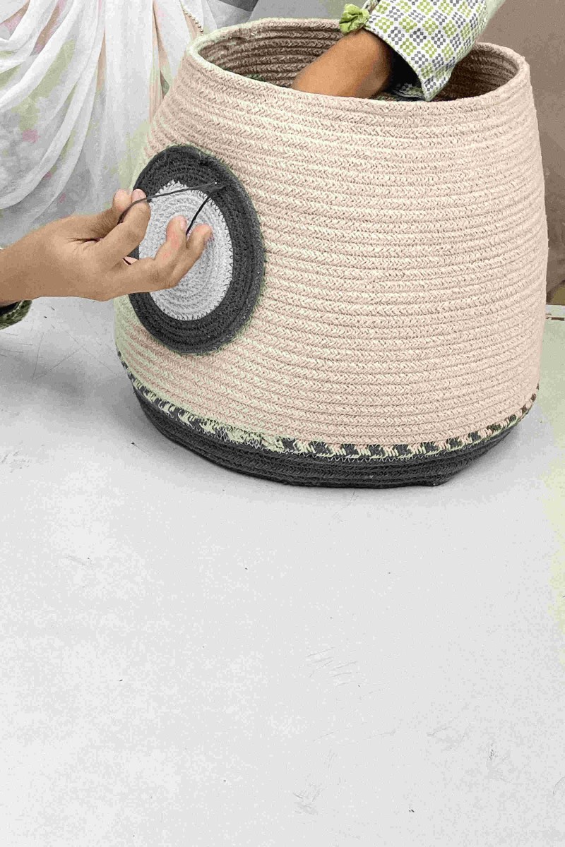 Jest to wyjątkowe dzieło rzemieślnicze, starannie zaprojektowane przez Lorenę Canals i wykonane ręcznie w sposób zrównoważony w naszej własnej fabryce przy użyciu naturalnych włókien i materiałów pochodzących z recyklingu, nietoksycznych barwników i zdecydowanego zaangażowania na rzecz planety i ludzi. Od procesu projektowania po pozyskiwanie materiałów i produkcję, zawsze wybieramy opcje, które minimalizują ilość odpadów i zapewniają długotrwałe projekty.