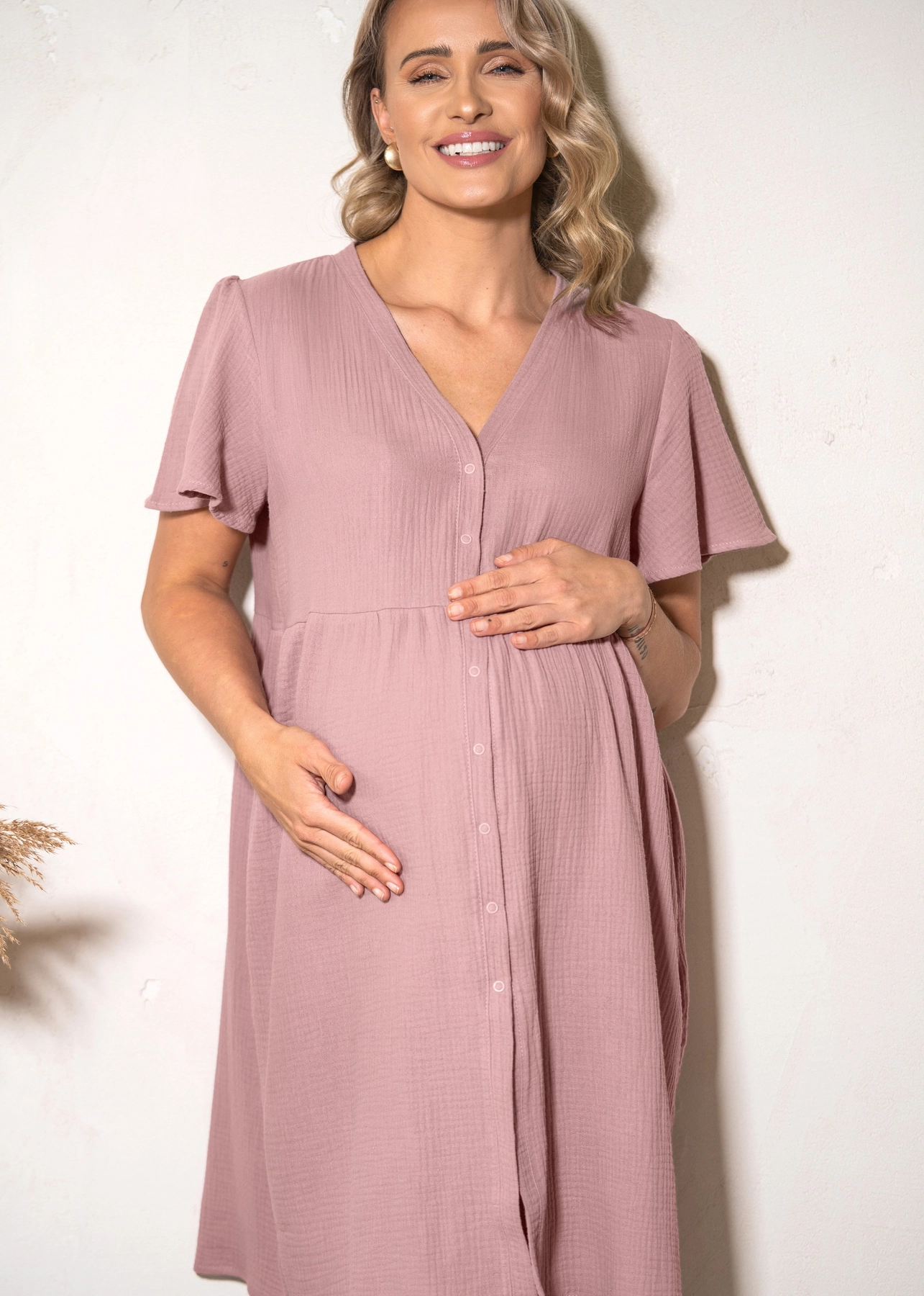 Koszula do porodu i karmienia muślinowa mist brudny róż IF