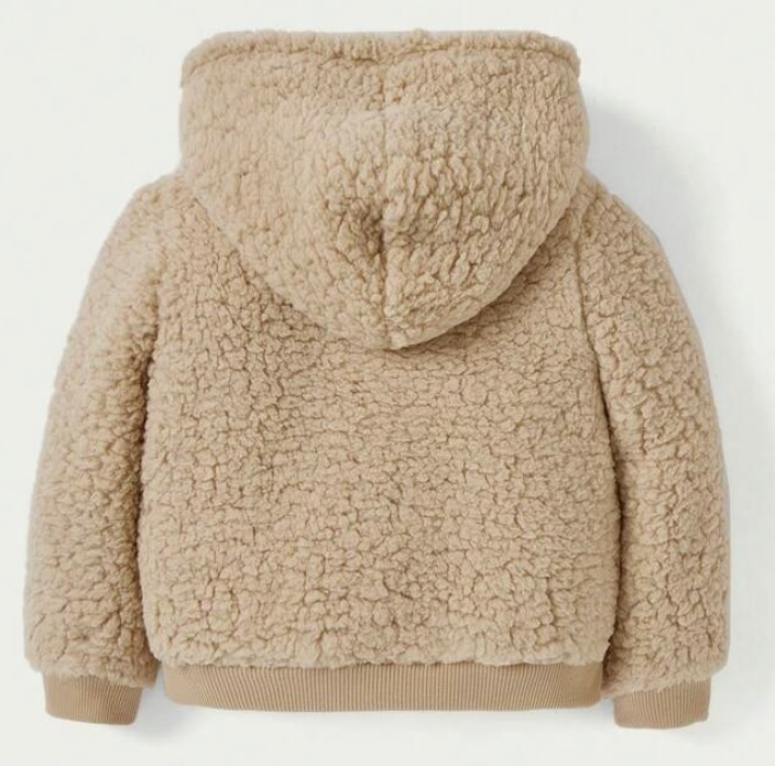 Kurtka z kapturem i guzikami ocieplana boucle beż Rozmiar do Wyboru NS