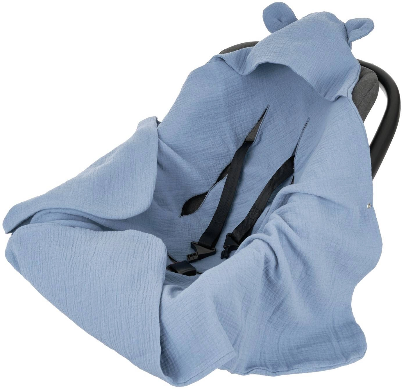 Letni muślinowy otulacz do fotelika samochodowego z uszkami jeans IF