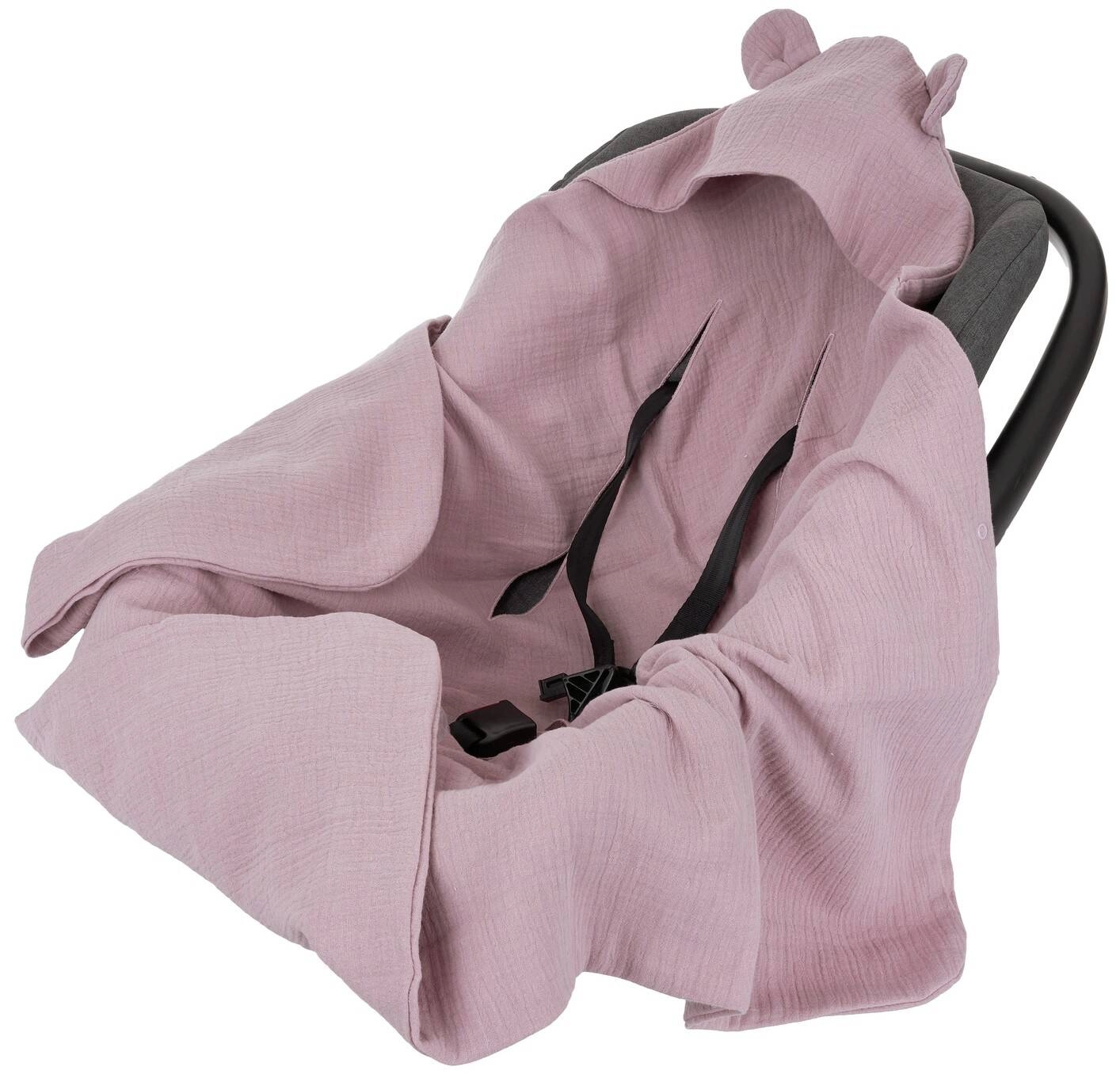 Letni muślinowy otulacz do fotelika samochodowego z uszkami brudny róż IF