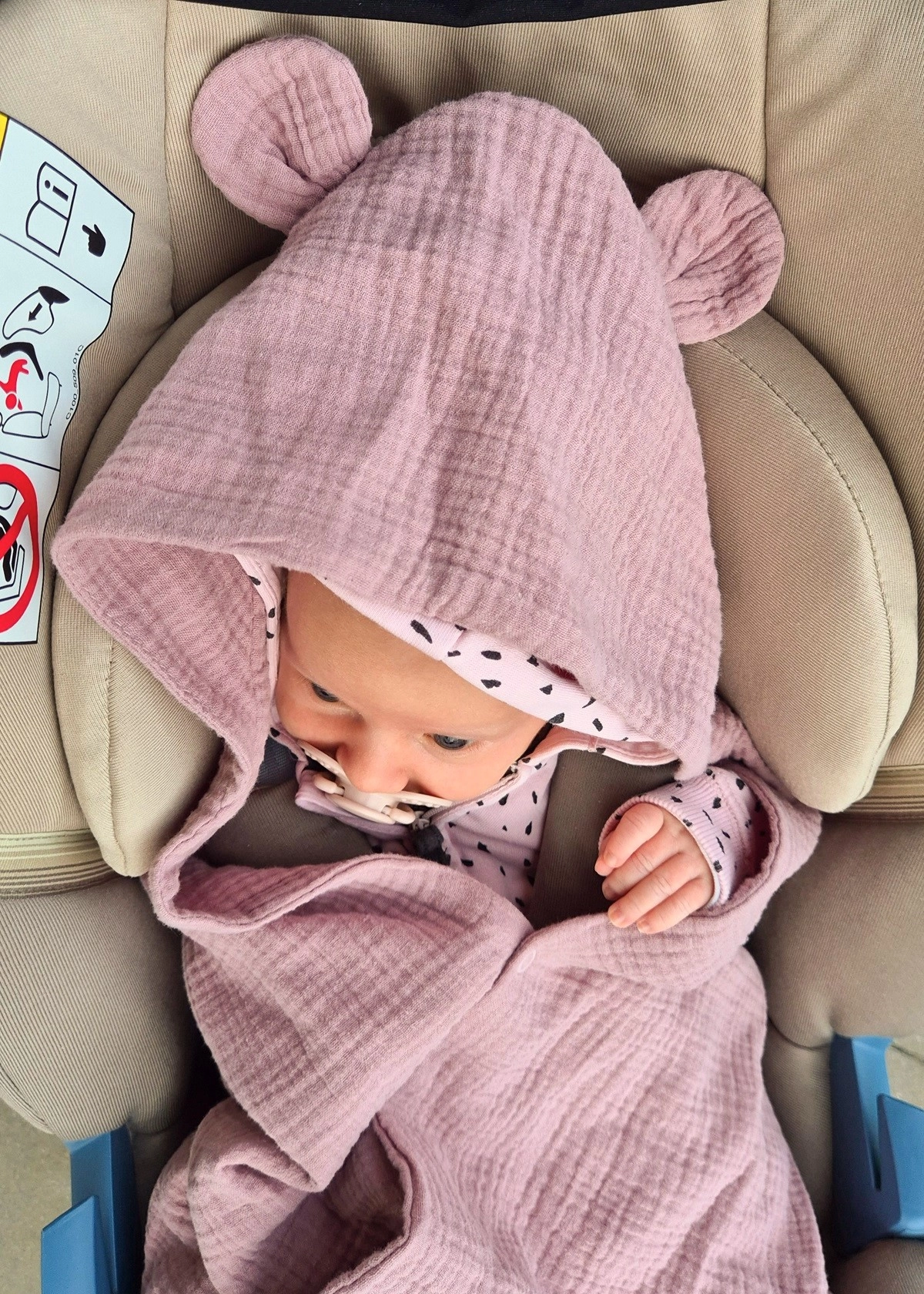 Otulacz z kapturkiem do fotelika to świetny pomysł na prezent z okazji narodzin maluszka czy baby shower.