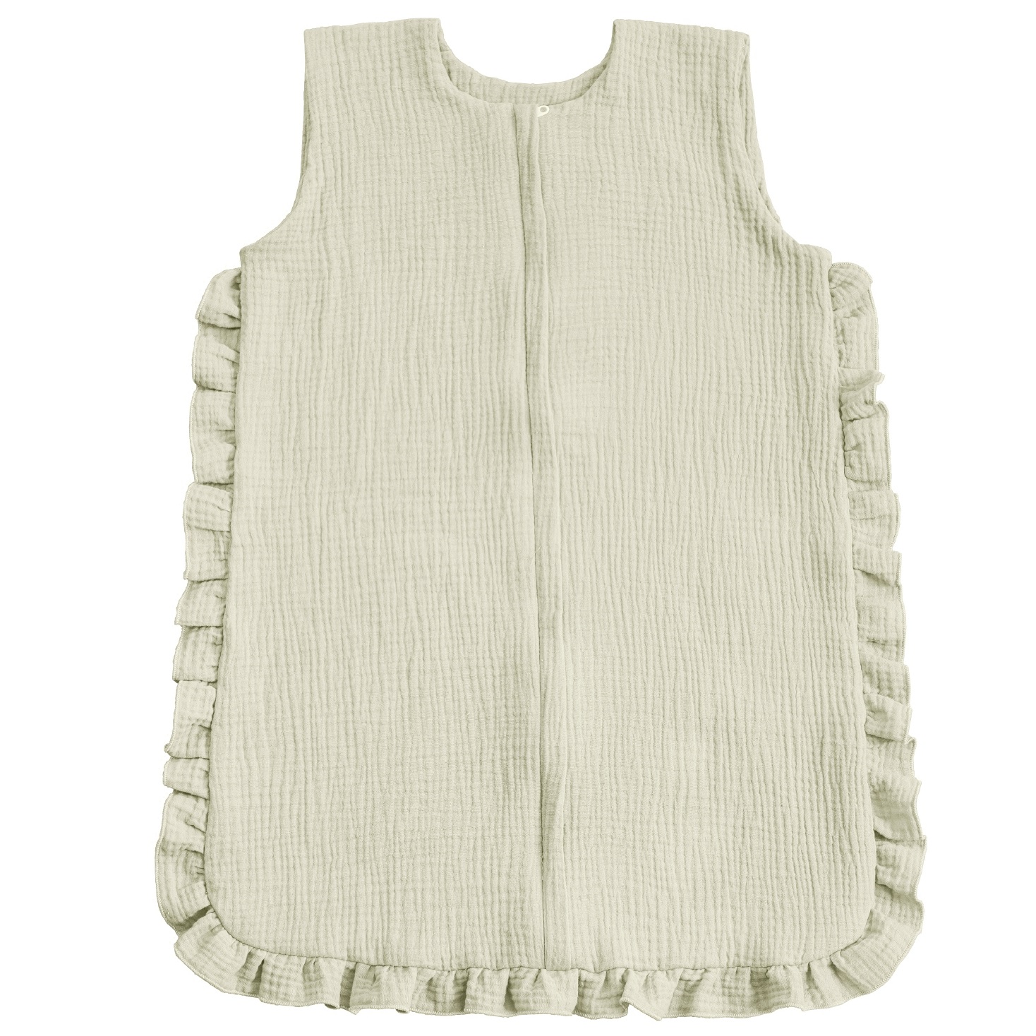 Śpiworek jest uszyty z dwóch warstw muślinu wykończony ozdobną falbanką