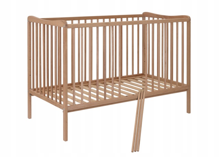 To nie jest łóżeczko sosnowe – wykonano je z twardszego i trwalszego drewna bukowego.