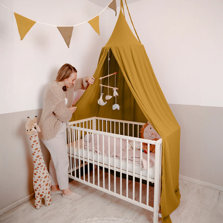 Muślinowy baldachim musztardowy ama