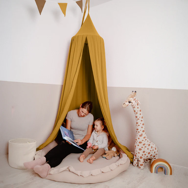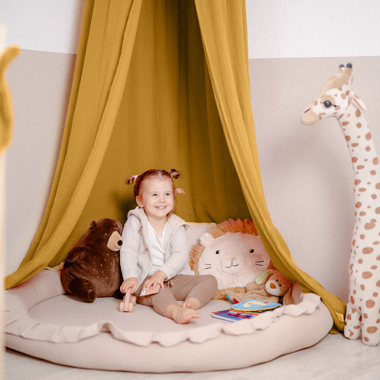 Stwórz wyjątkową, bajkową przestrzeń w pokoju dziecka. Baldachim wykonany z delikatnego muślinu  doda wnętrzu niepowtarzalnego uroku, tworząc przytulny kącik do snu, zabawy czy relaksu.