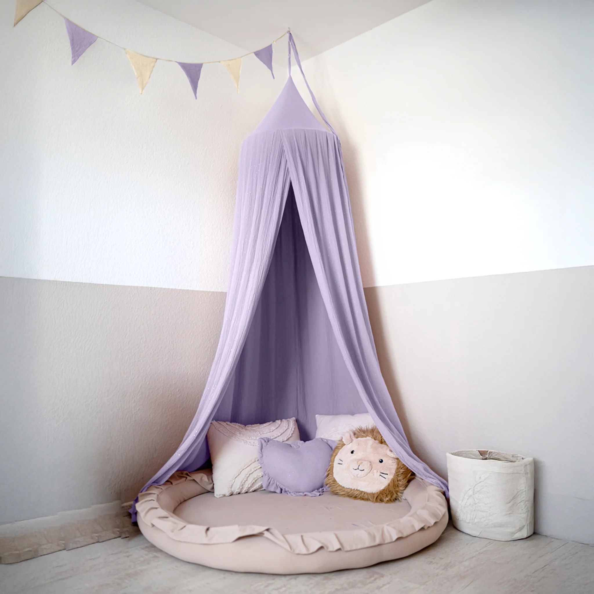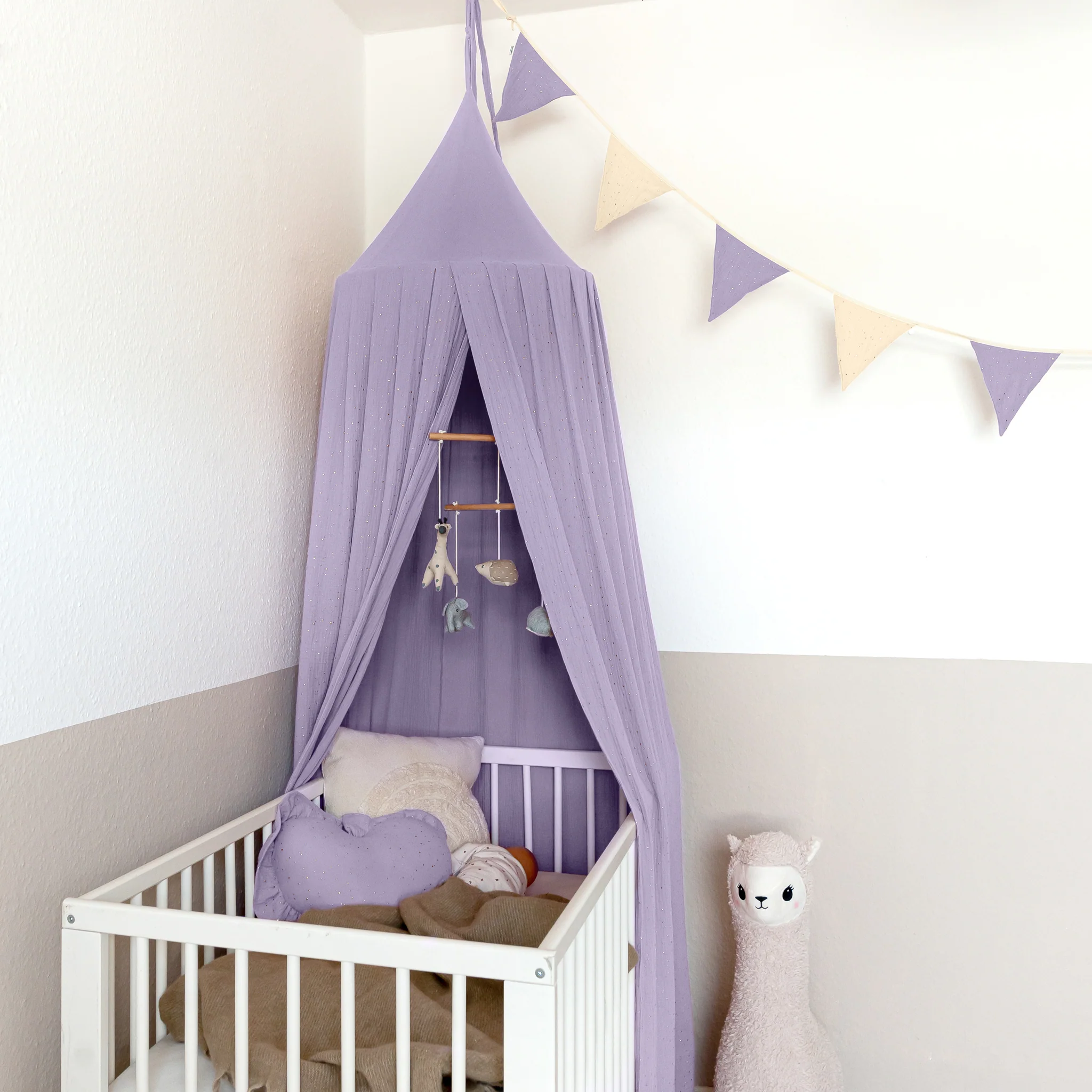 Muślinowy baldachim ze złotymi drobinkami liliowy ama