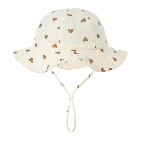 Muślinowy kapelusz 3-12 miesięcy Serduszka beżowe NS