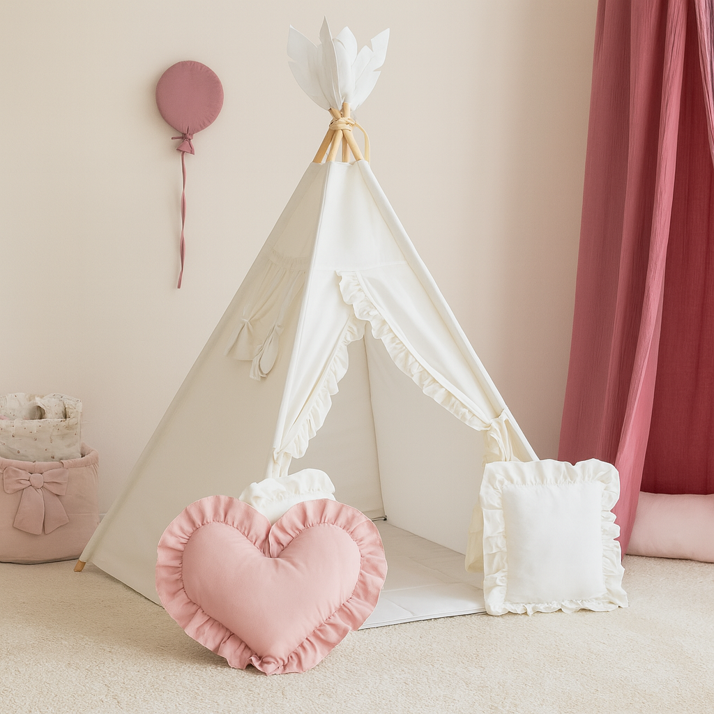 Namiot tipi to świetna kryjówka dla Twojego dziecka na każdą porę roku. Idealnie sprawdzi się w mieszkaniu, na tarasie, balkonie czy ogrodzie. Ozdobi każde wnętrze i nada przytulności.