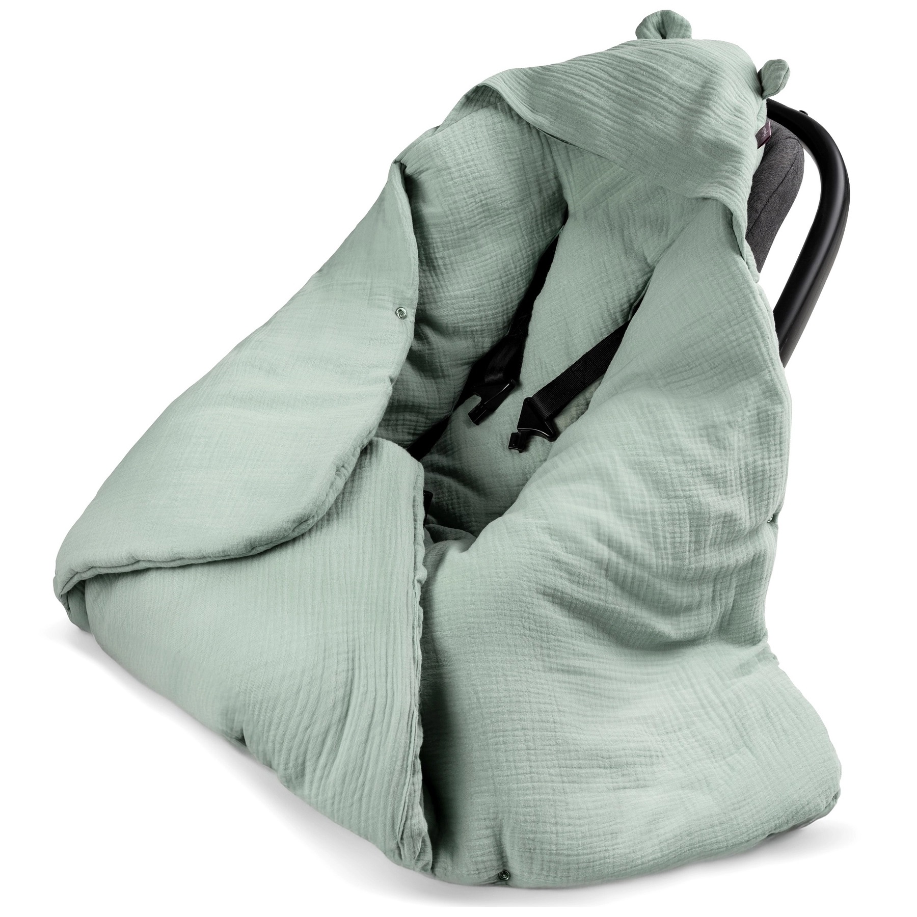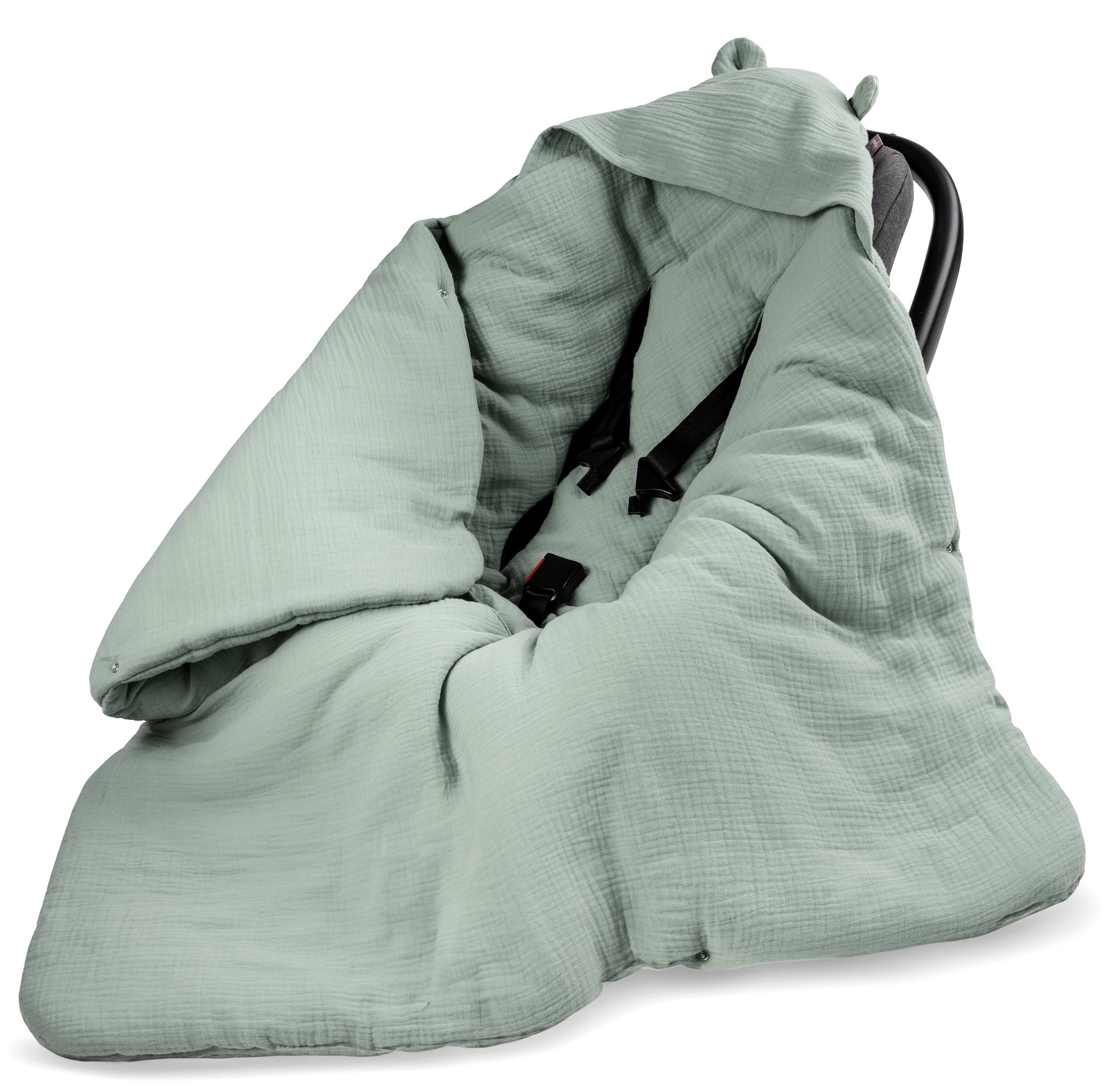 Otulacz do fotelika muślinowy ocieplany z uszkami szałwia IF
