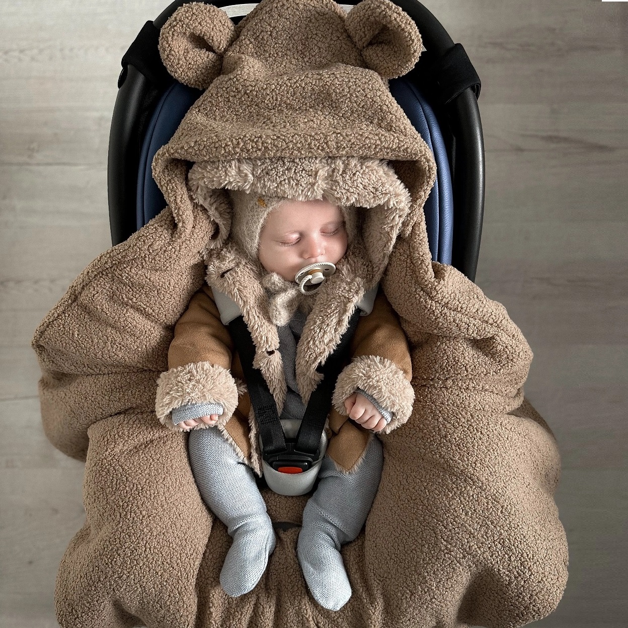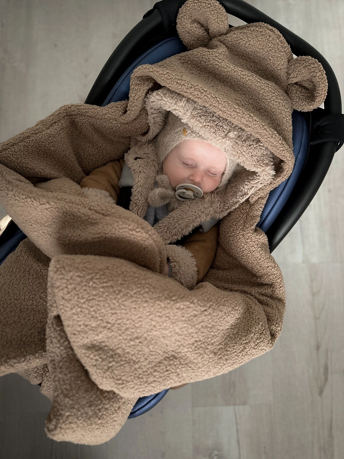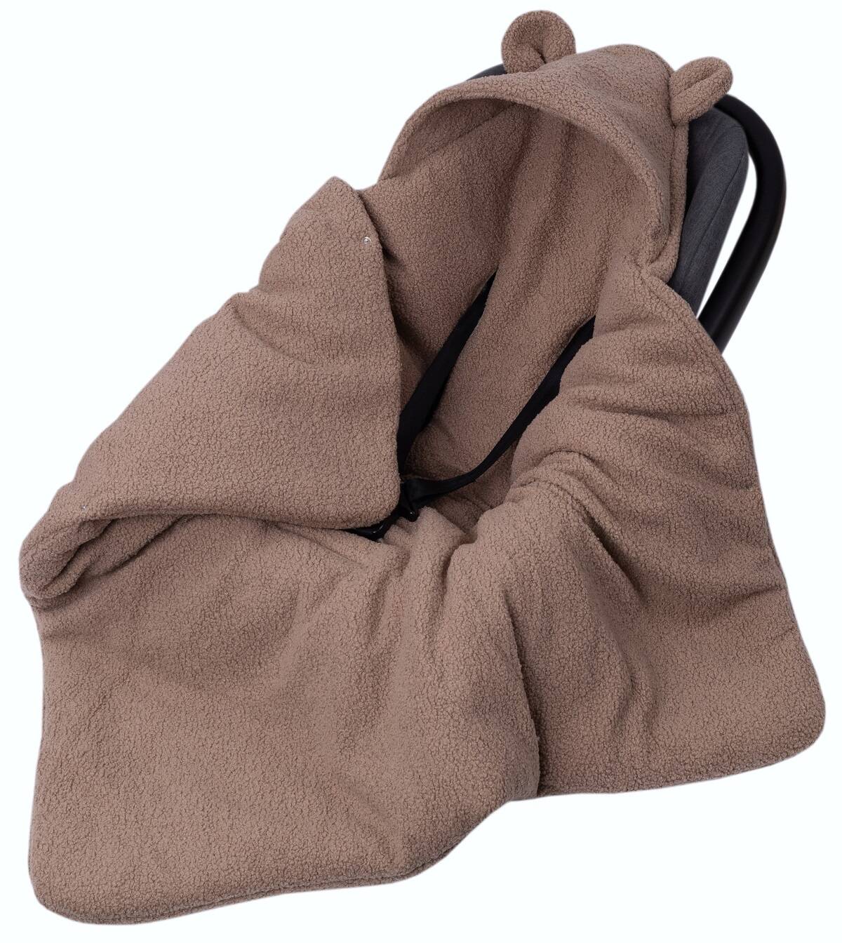 Zimowy otulacz do fotelika z uszkami premium boucle brąz IF