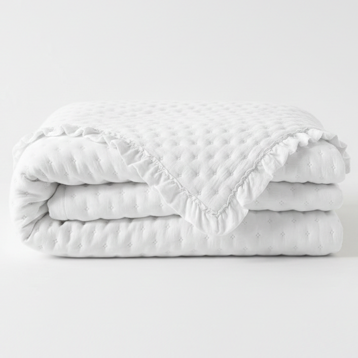 Pikowana narzuta na łóżko z falbanką biała 170×210 als