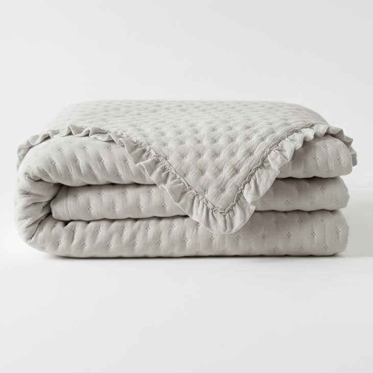 Pikowana narzuta na łóżko z falbanką szara 170×210 als