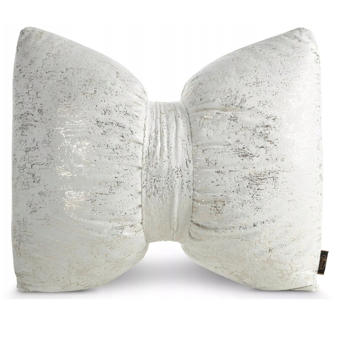 Elegancka, welwetowa poduszka w kształcie kokardy to stylowa dekoracja, która doda wnętrzu wyjątkowego blasku. Delikatny kremowy kolor w połączeniu z błyszczącym złotym nadrukiem tworzy luksusowy efekt, idealny do salonu, sypialni czy pokoju nastolatki.