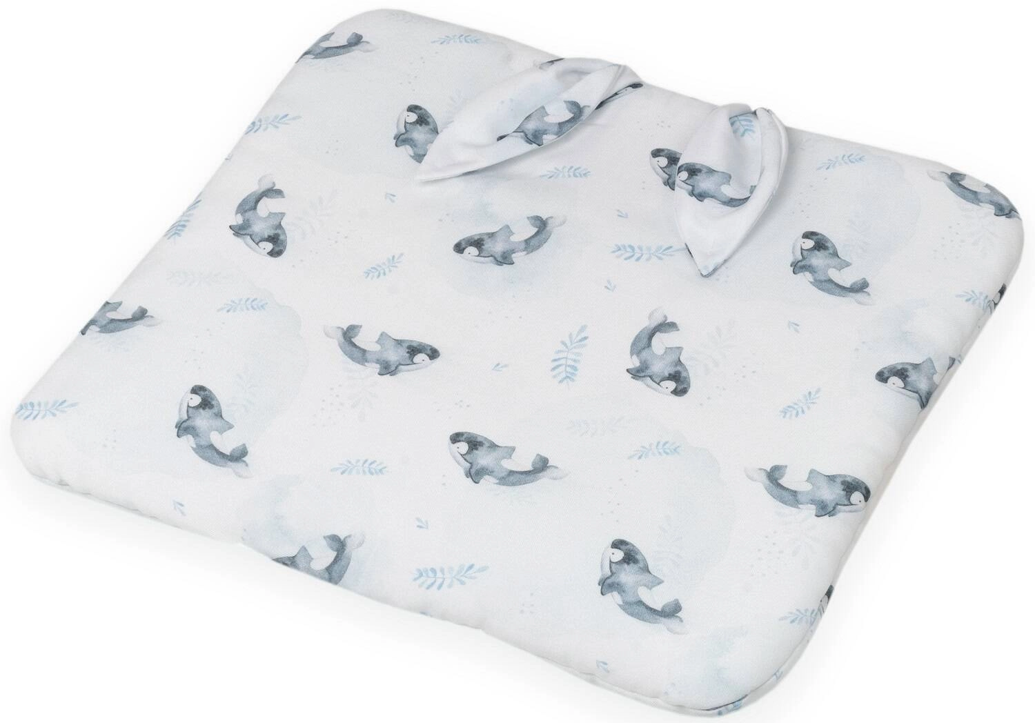 Wykończona dekoracyjnymi uszkami, które dodają jej jeszcze więcej uroku. Uszka przyszyte są do podusi aby były bezpieczne w kontakcie z maluszkiem.
