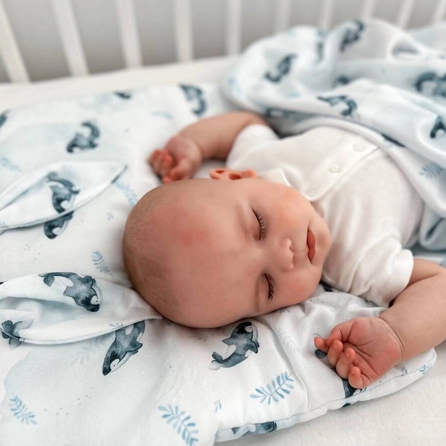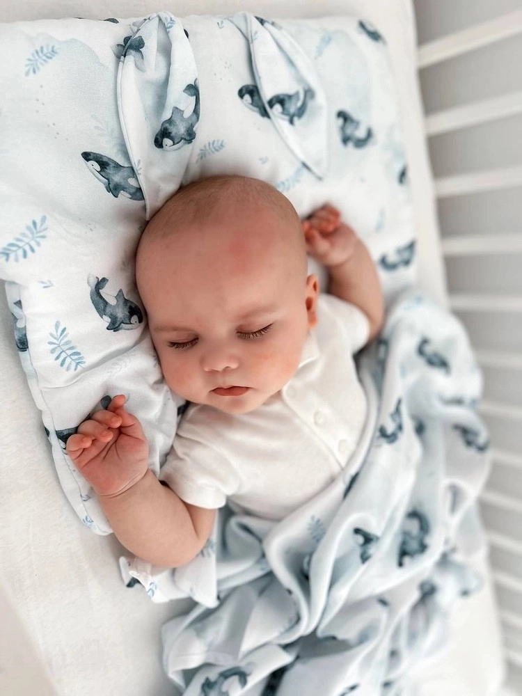 To duża poduszka o wymiarach 40x50cm, która idealnie sprawdzi się do użytku w łóżeczku ale także w kołysce czy koszu mojżesza.