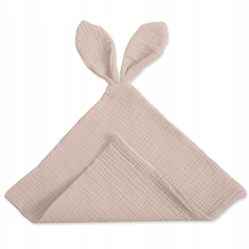Przytulanka jest wykonana z muślinu – jest bardzo przyjemna oraz delikatna dla skóry dziecka.