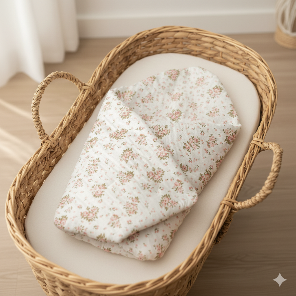 Rożek niemowlęcy muślinowy Delikatne Kwiatuszki AL