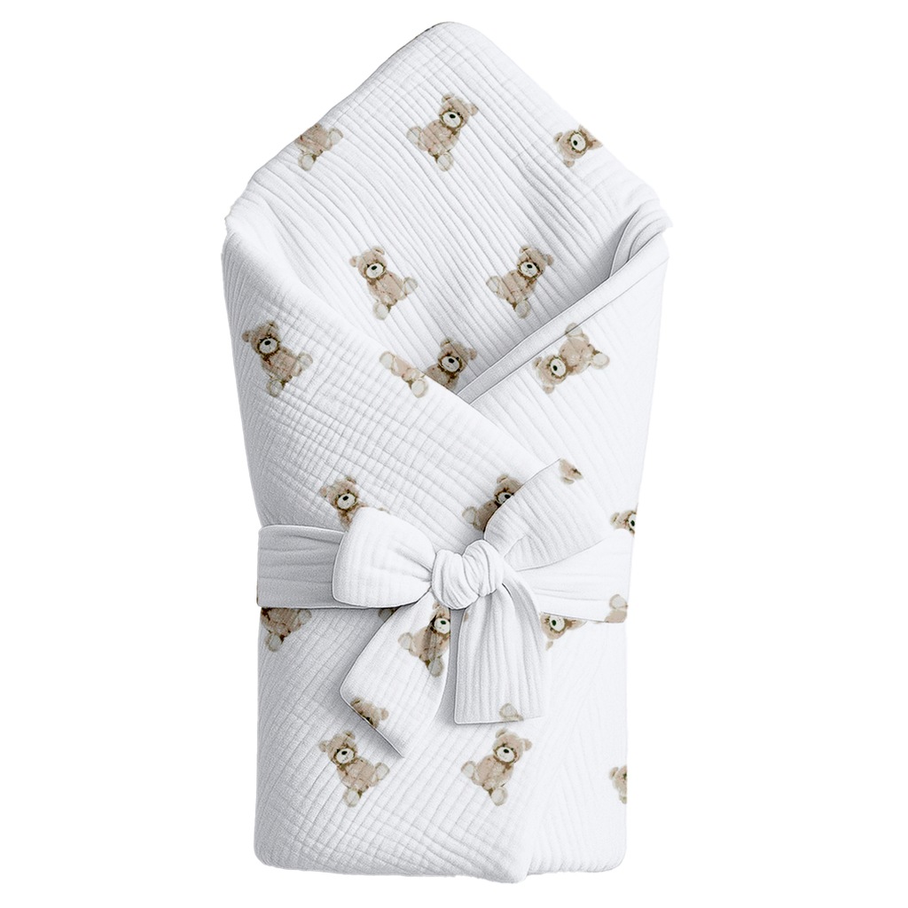 Miękki, lekki i przytulny rożek muślinowy z uroczym motywem pluszowych misiów to idealny wybór dla najmłodszych. Wykonany z delikatnego, kreszowanego muślinu zapewnia komfort, otulenie i odpowiednią przewiewność od pierwszych dni życia maluszka. Dekoracyjna kokarda dodaje mu uroku i pozwala idealnie dopasować rożek do dziecka.