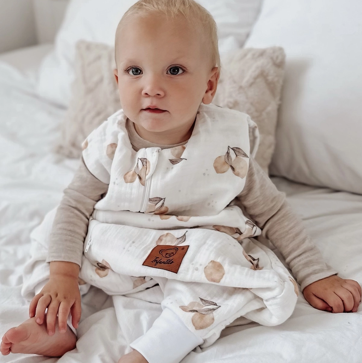 Śpiworek nie wymaga dodatkowych okryć i kocyków, jego grubość idealnie sprawdzi się w cieplejsze dni z lekką piżamką. Należy dobrać ubranie do snu do temperatury panującej w pomieszczeniu i indywidualnych preferencji dziecka.