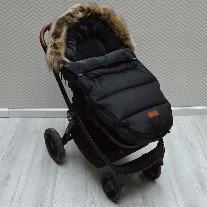 Śpiworek do wózka pluszowy czarny AL