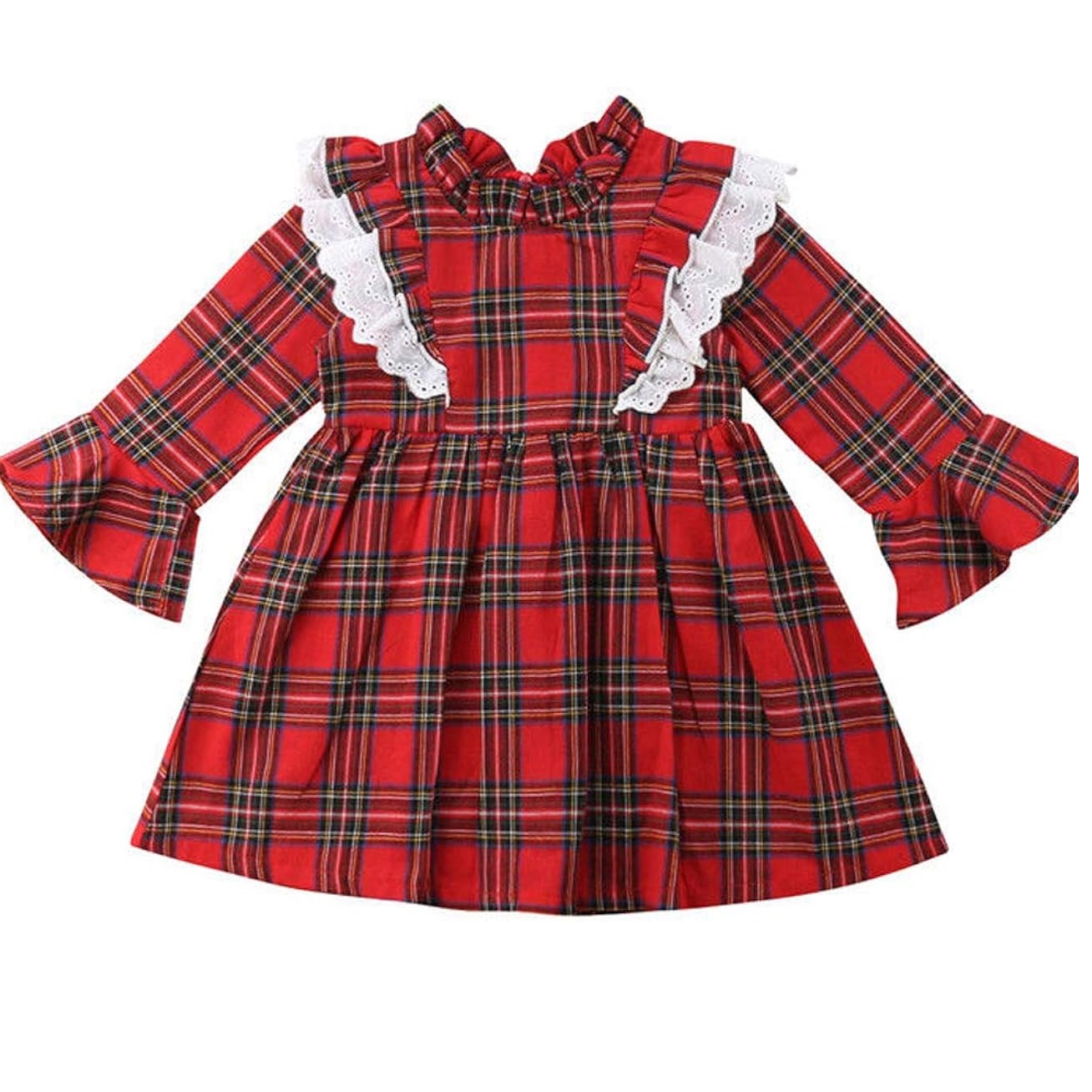 Sukienka świąteczna flanelowa z koronką białą.