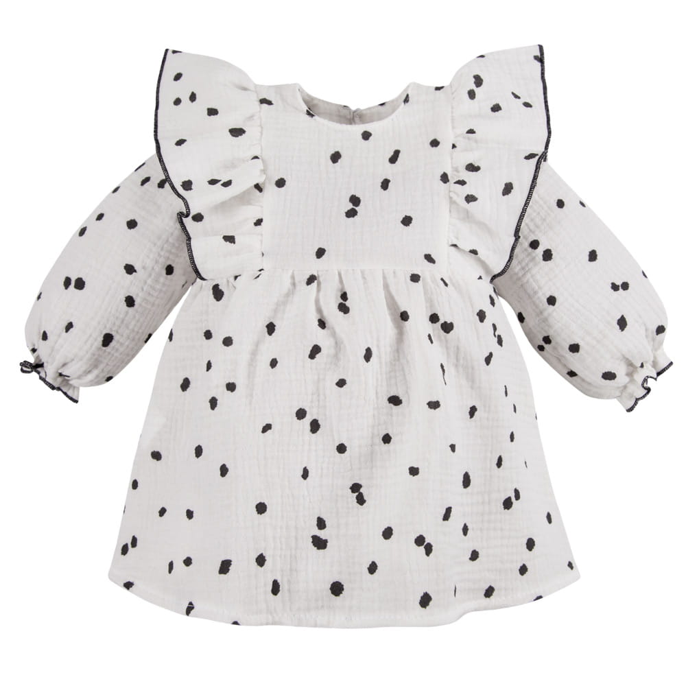 Sukienka dziecięca uszyta z miękkiej i przyjemnej w dotyku dzianiny bawełnianej.