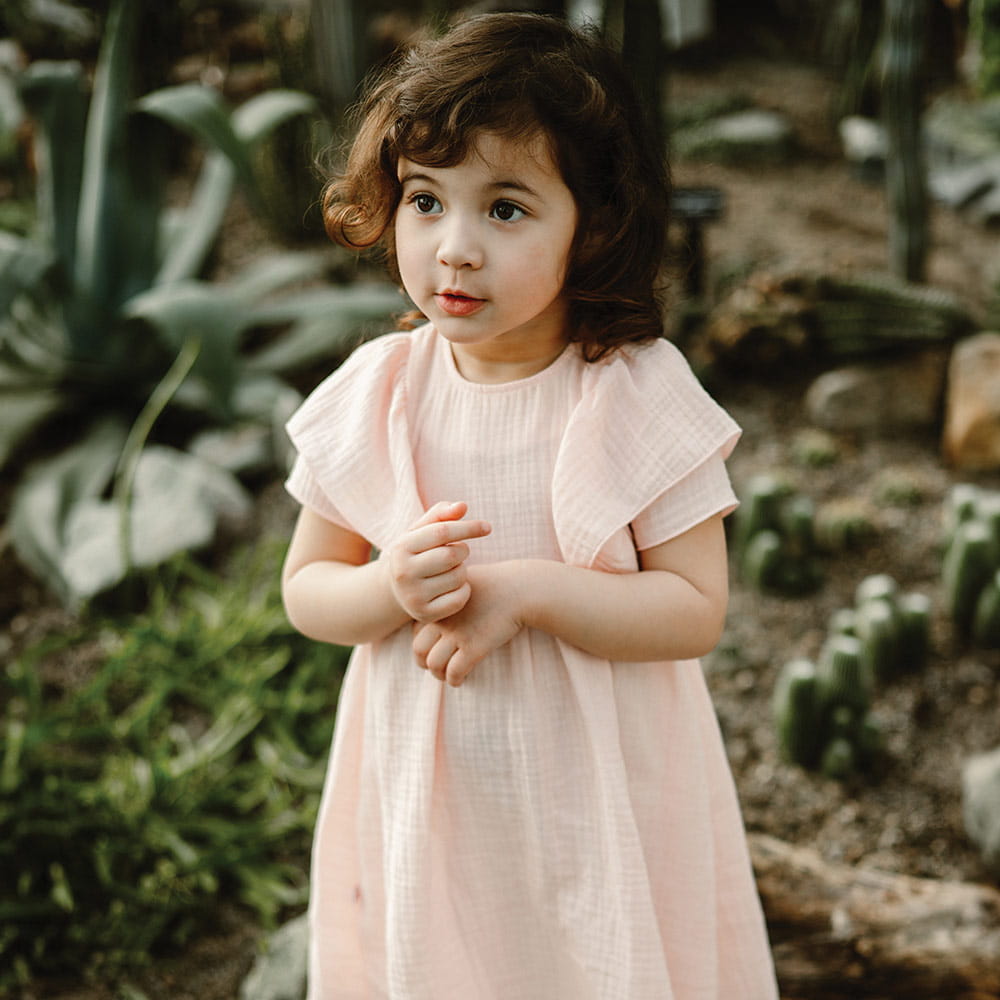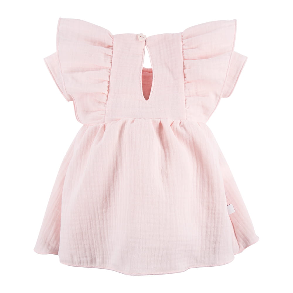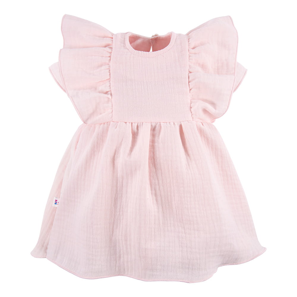 Sukienka dziecięca uszyta z miękkiej i przyjemnej w dotyku dzianiny bawełnianej.