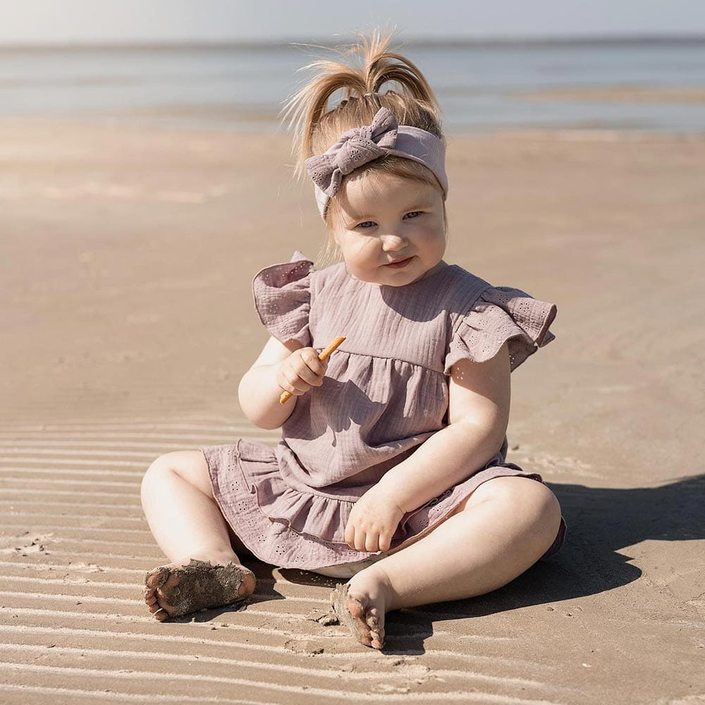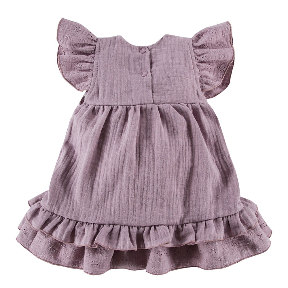 Sukienka dziecięca uszyta z miękkiej i przyjemnej w dotyku dzianiny bawełnianej.