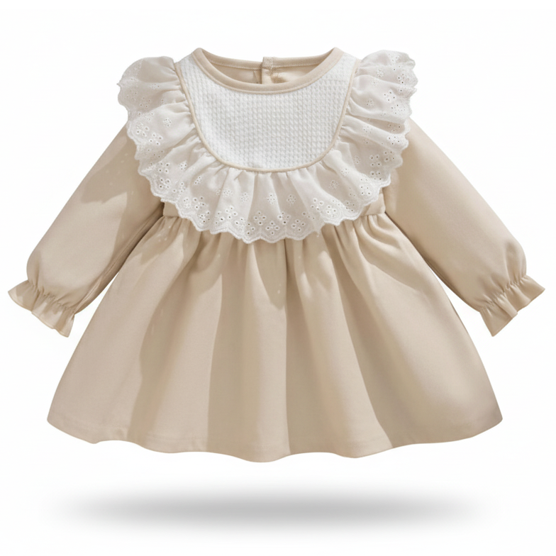 Sukienka świąteczna beżowa z koronkowym kołnierzykiem NS