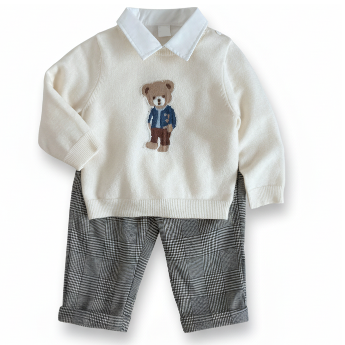 Chłopięcy sweterek z Misiem ecru ns
