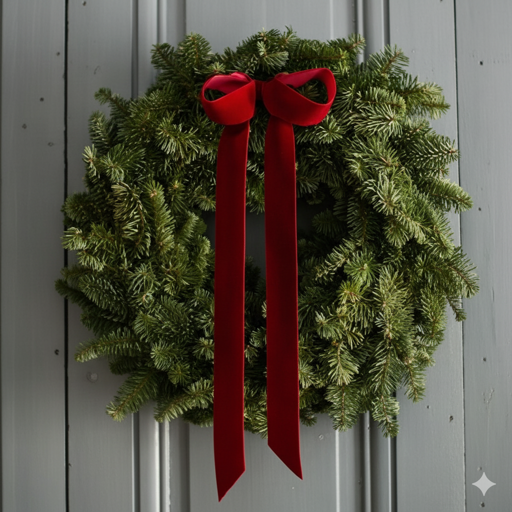 Elegancki wianek bożonarodzeniowy o średnicy 40 cm, ozdobiony bordową welurową wstążką. To stylowa dekoracja, która wprowadzi do domu wyjątkowy, świąteczny klimat i podkreśli magię Bożego Narodzenia. Doskonale prezentuje się na drzwiach wejściowych, nad kominkiem, w oknie czy na ścianie, stając się efektownym akcentem aranżacji.