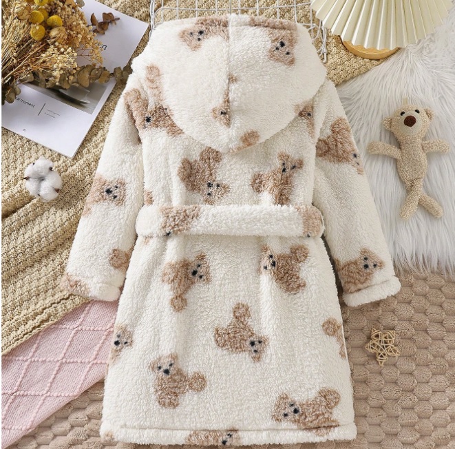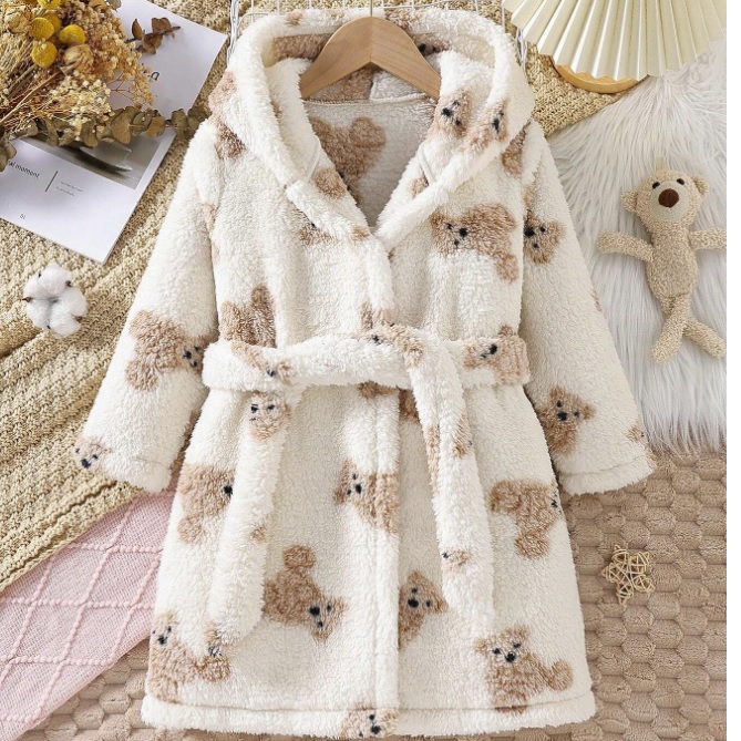 Szlafrok okrycie kąpielowe z nadrukiem niedźwiadki i wiązaniem