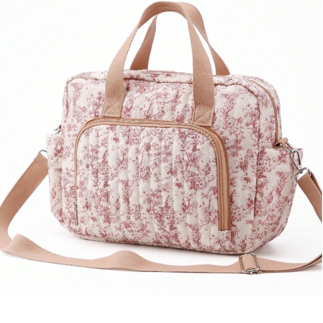 Torba do wózka duża pikowana beżowa w kwiaty NS