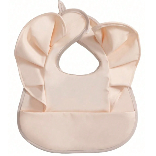 Wodoodporny śliniak dla dziecki z falbanką i kieszonką brzoskwiniowy NS