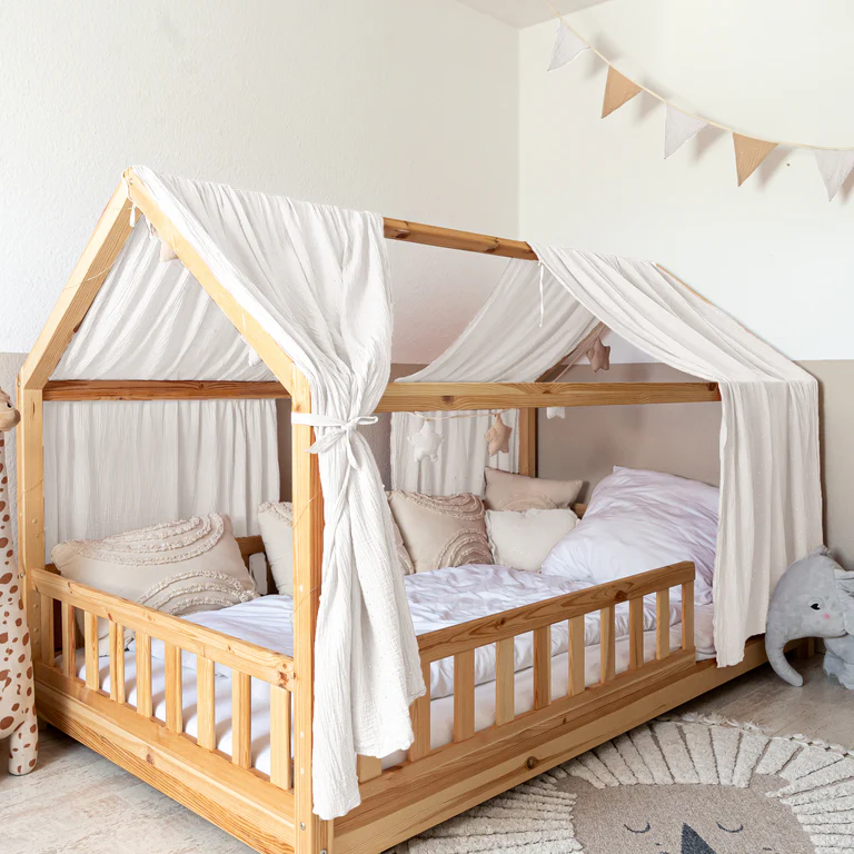 Dodaj odrobinę magii i ciepła do pokoju swojego dziecka z naszymi zasłonkami muślinowymi do łóżeczek domków.