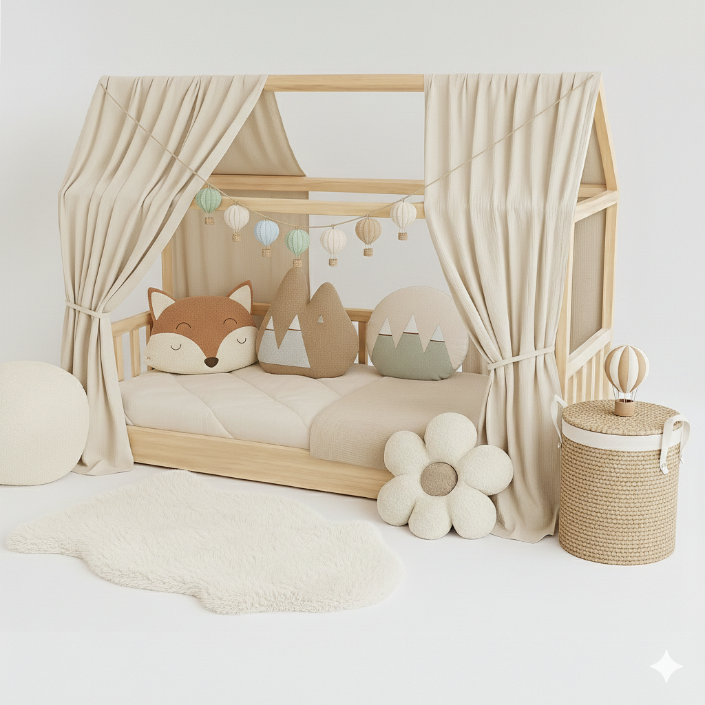 Dodaj odrobinę magii i ciepła do pokoju swojego dziecka z naszymi zasłonkami muślinowymi do łóżeczek domków.