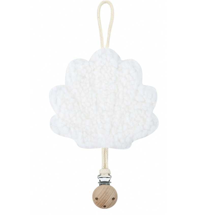 Zawieszka uchwyt do smoczka liść baranek biel SN