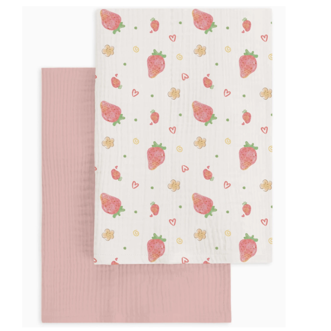 Zestaw 2 otulaczy muślinowych Truskawka 110×110 cm NS