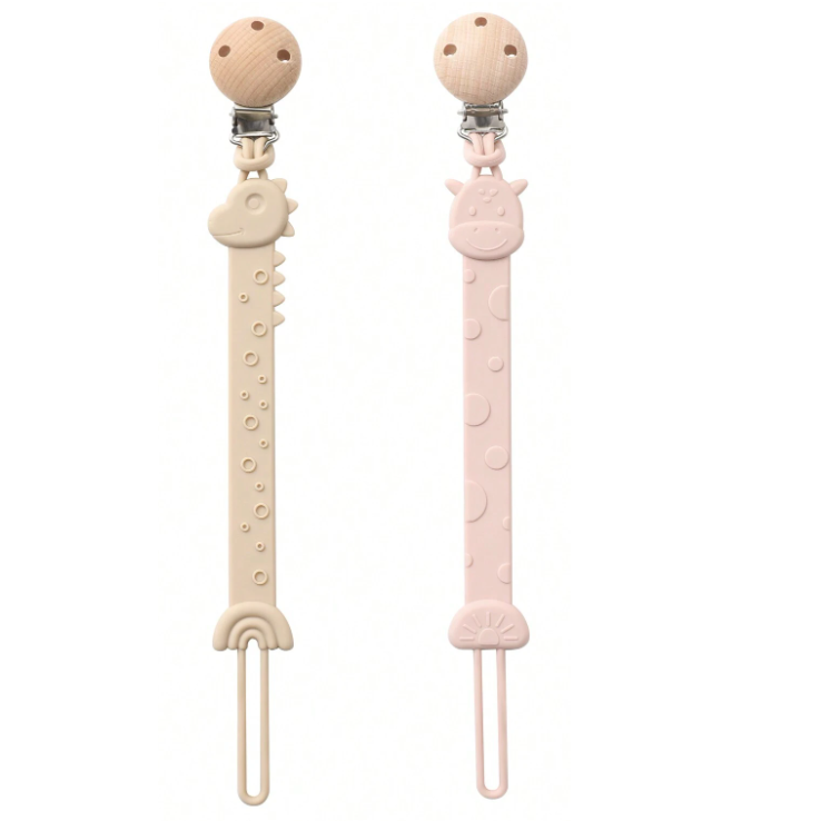 Zestaw 2 zawieszek silikonowych do smoczka dinozaur żyrafa beż – róż SN