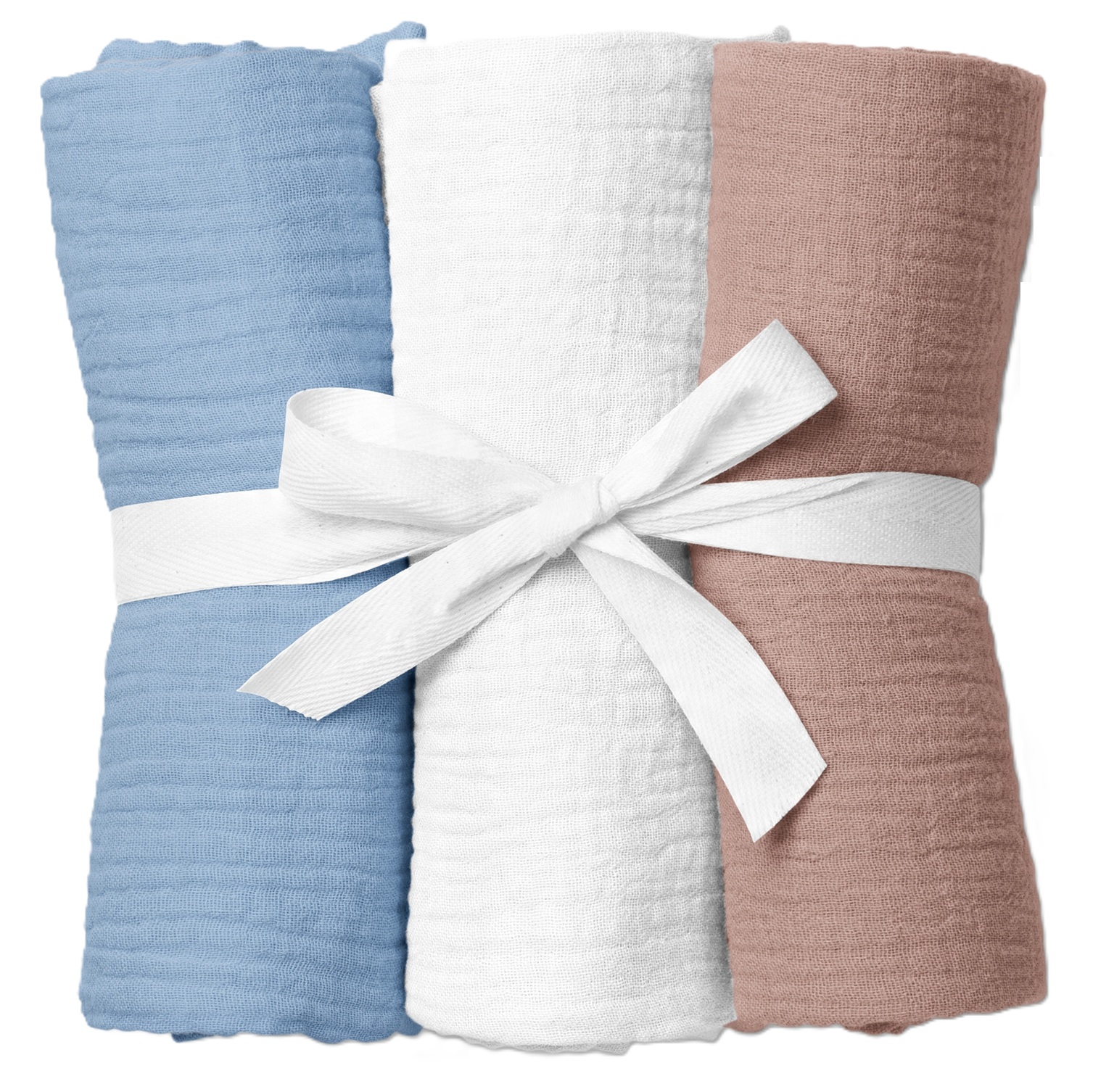 Zestaw 3 pieluszek muślinowych Ciemny Beż, Jeans i Biała AL