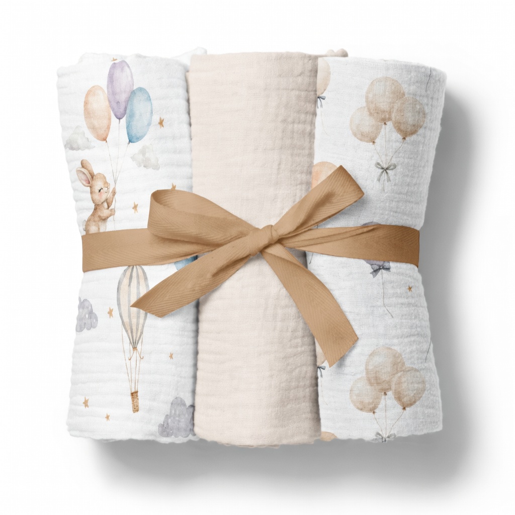 Zestaw 3 pieluszek muślinowych Króliczki i baloniki als